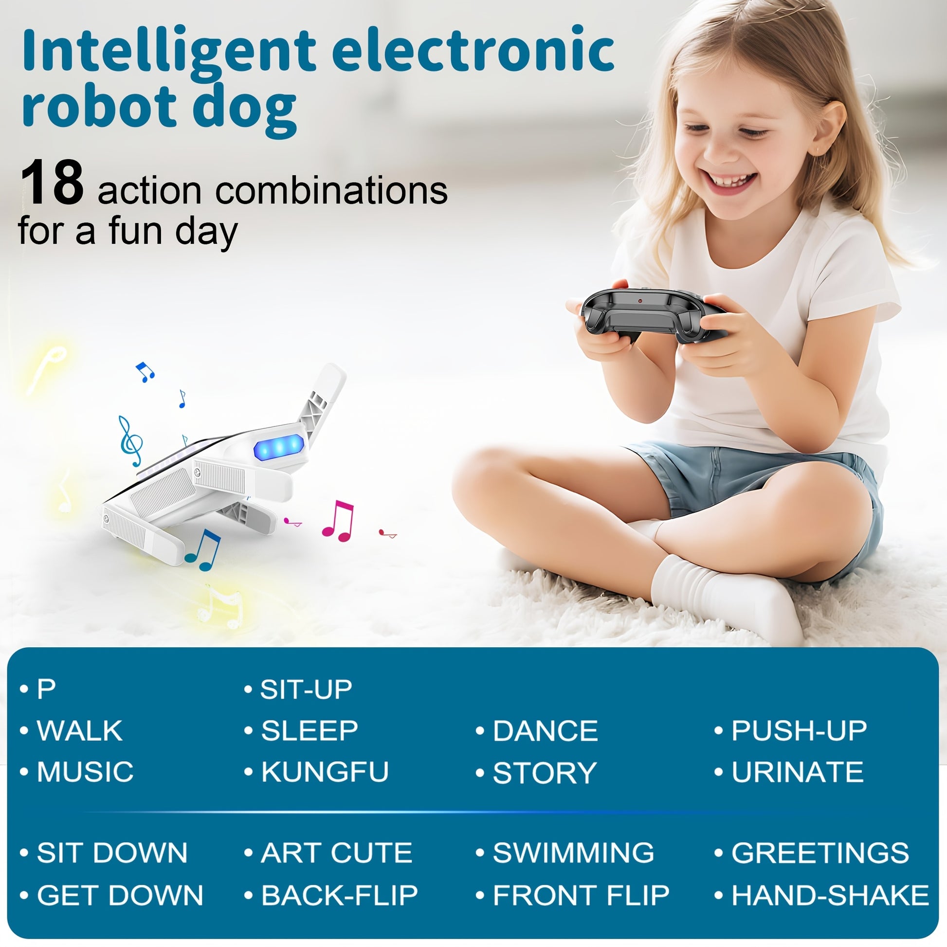 Bring home endless fun with this 2.4GHz remote-controlled AI robot dog. Program actions via a mobile app, control it with voice commands, and watch it dance, tell stories, and perform tricks. With a remote control range up to 99 ft, play anytime, anywhere!