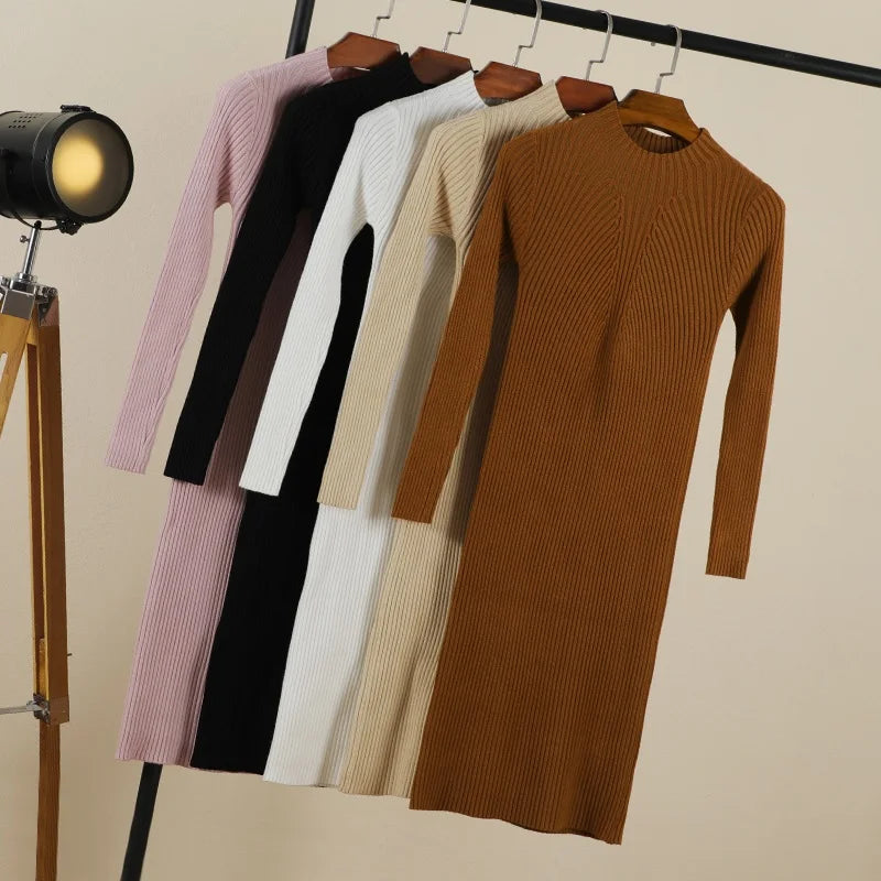 Sweater Dress Female 2025 Winter Knitted Basic Casual Women's Dresses Ladies Korean Fashion Clothes Clothing Robe Elegant Black